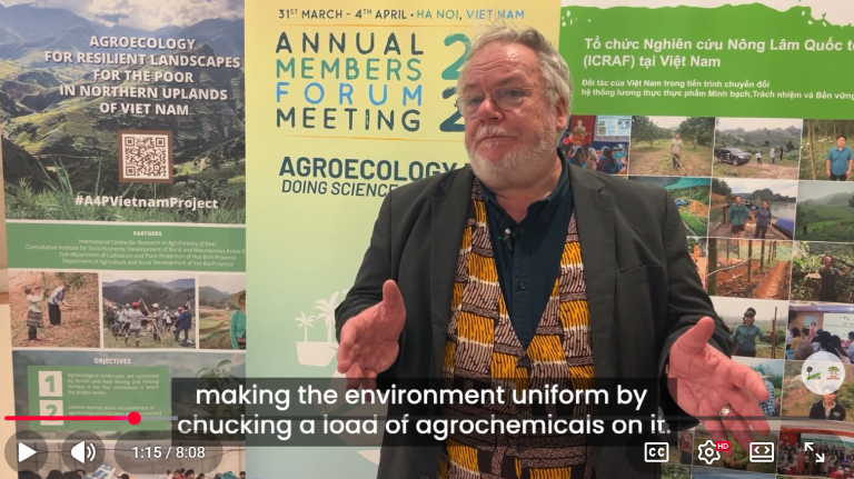 VideosConversations with Dr Fergus Sinclair around Agroecology2025Watch nowIn this exclusive interview at the 2025 Annual Members Forum Meeting of the Agroecology TPP, Dr. Fergus Sinclair explores the evolving role of agroecology in shaping sustainable food systems worldwide and how science and local knowledge can work hand in hand to transform agriculture for people and the planet. Interview produced by Vishy Teki/CRCINDIA
