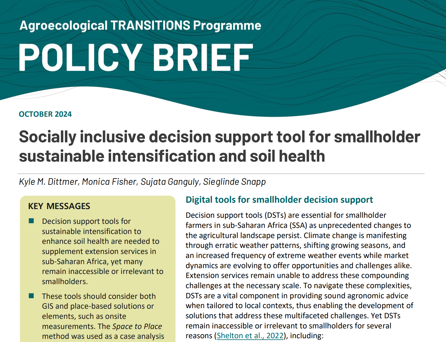 Socially inclusive decision support tool for smallholder sustainable intensification and soil health