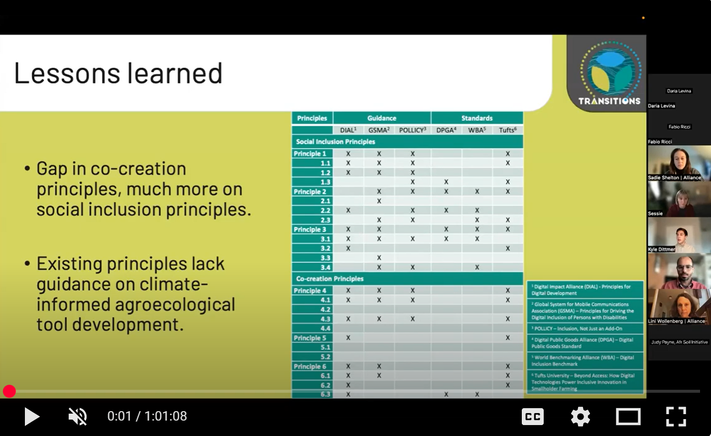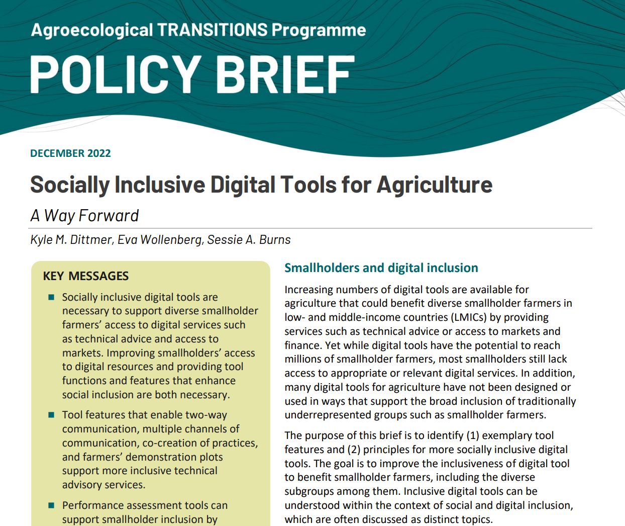 In this informal expert workshop, the TRANSITIONS Inclusive Digital Tools (ATDT) project reviewed and received feedback from stakeholders and experts on proposed guidance for smallholder farmer’s inclusion and co-creation of farm practices for agroecology and climate change action